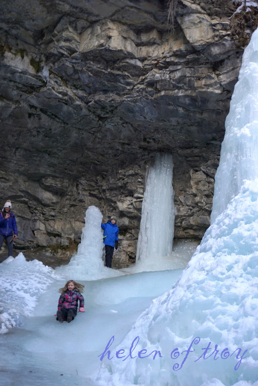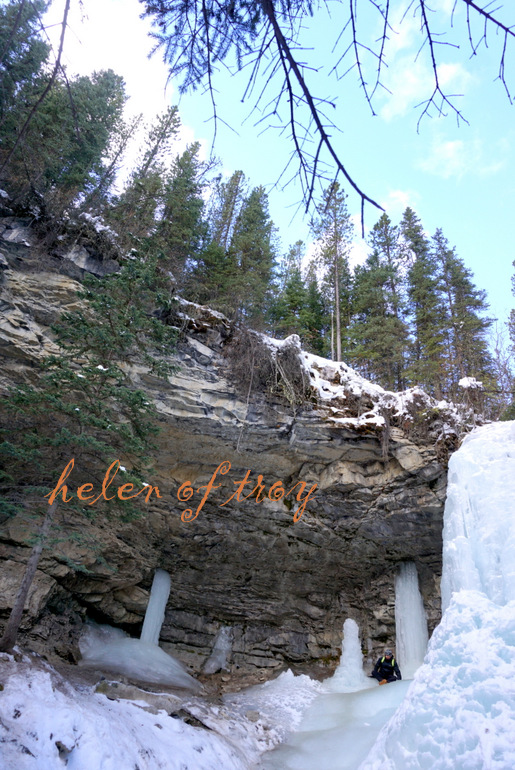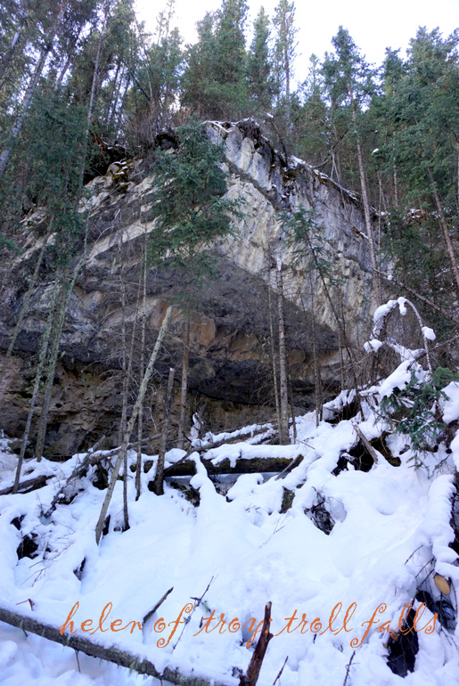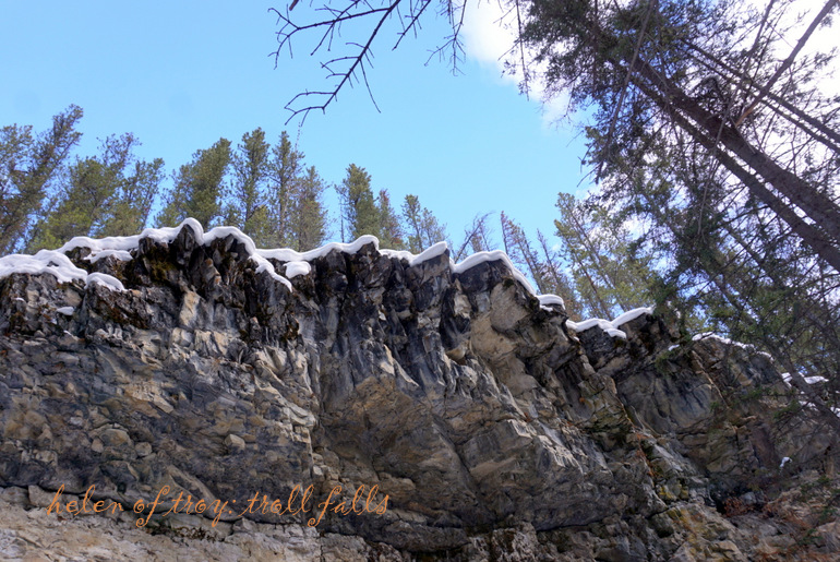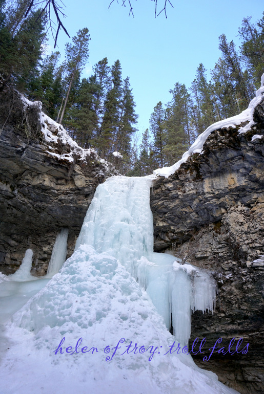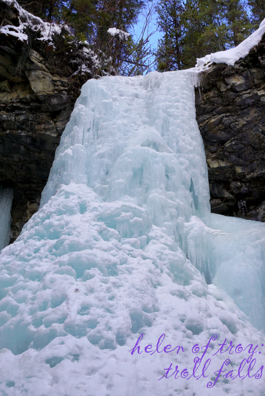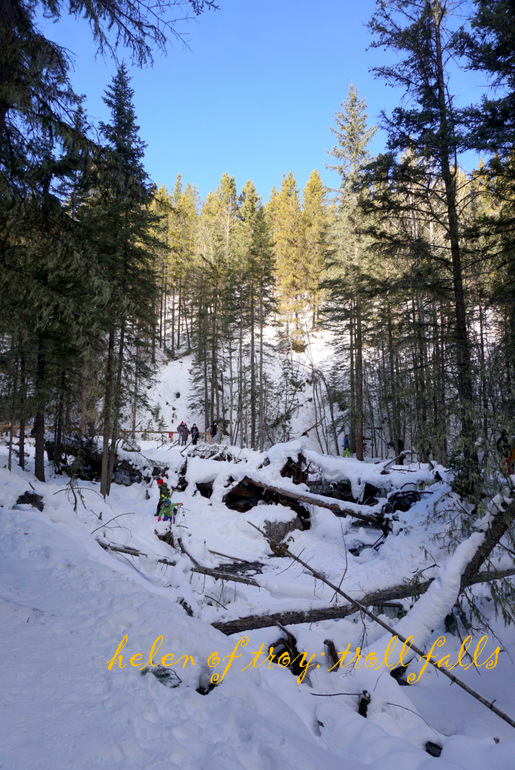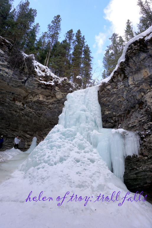 저 앞에 얼어붙은 트롤 폭포가 눈에 들어온다.