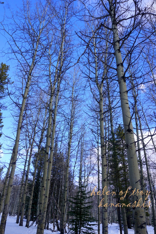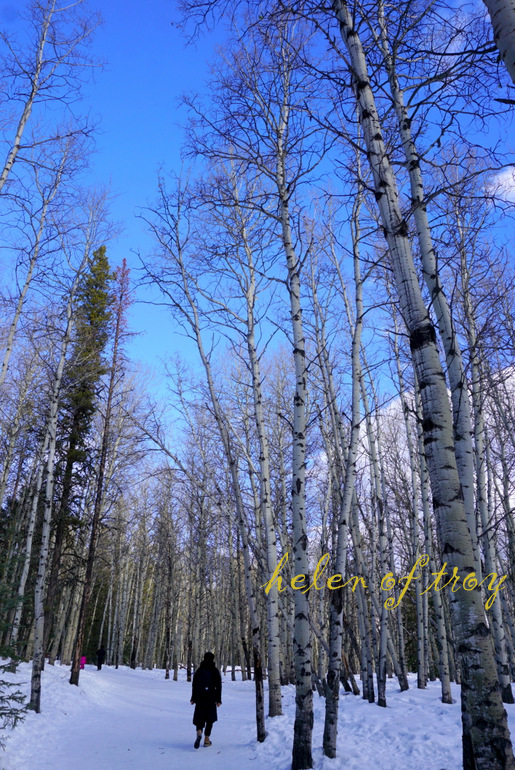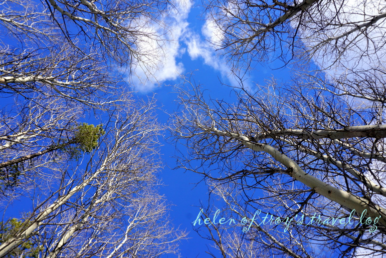 이 곳엔 나무껍질 색깔이 자작나무처럼 하얀 아스펜 나무가 운집되어 있다.