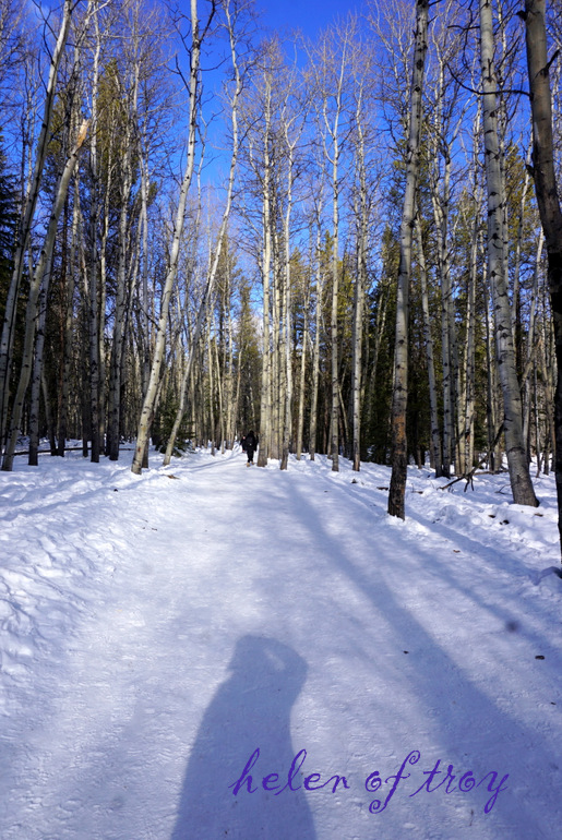로키의 겨울 날씨치고 너무 따스한 영하 7도에 눈부신 햇빛과 파란 하늘이 있고,