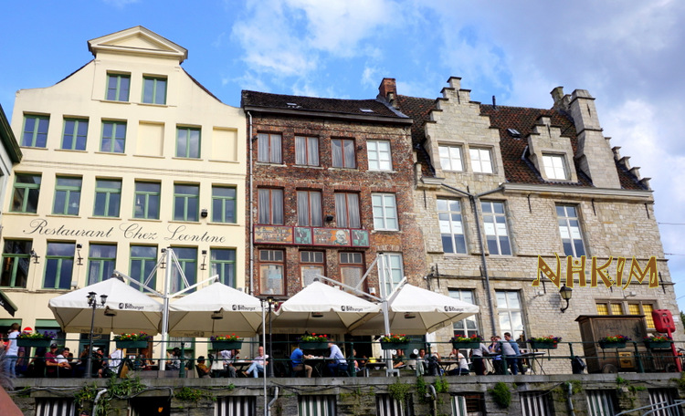 강의 동쪽인 Graslei/그라슬라이 길(오른편)과