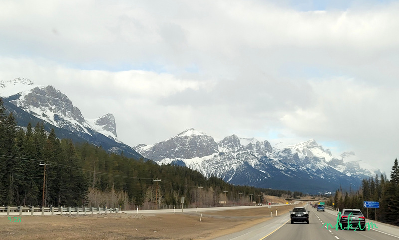 캔모어 근처 하이웨이에서 Three Sisters 산 등 험난한 로키 산들이 위용을 자랑하고 있다.
