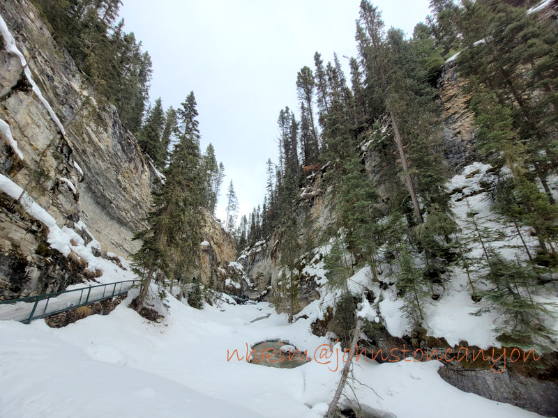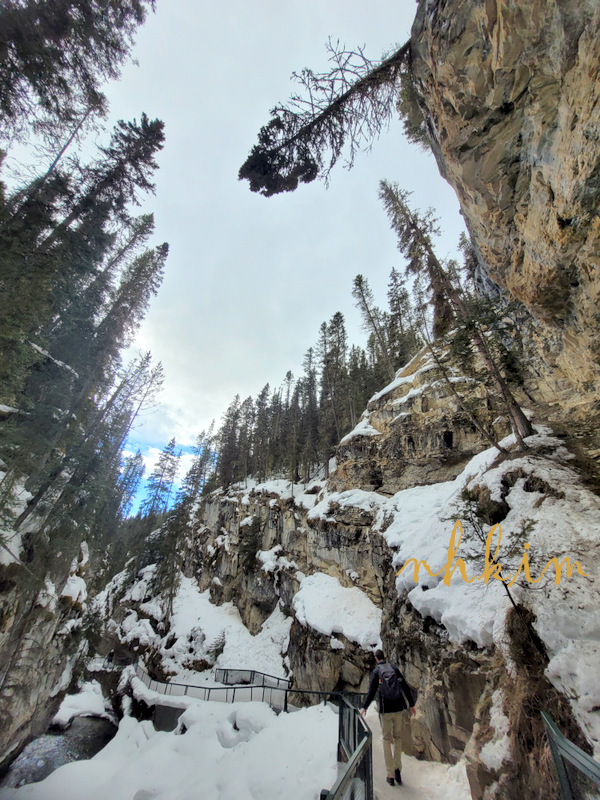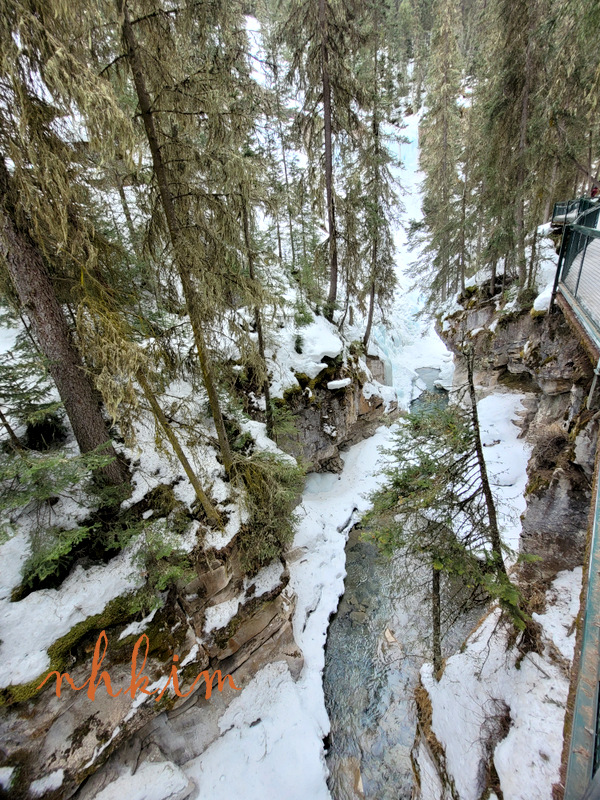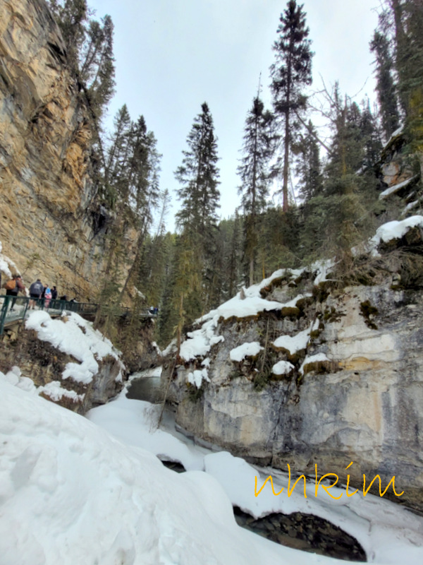 준비해 간 크렘펀을 신발에 착용하고 협곡이 시작되는 다리에서 내려다 본 존스턴 협곡