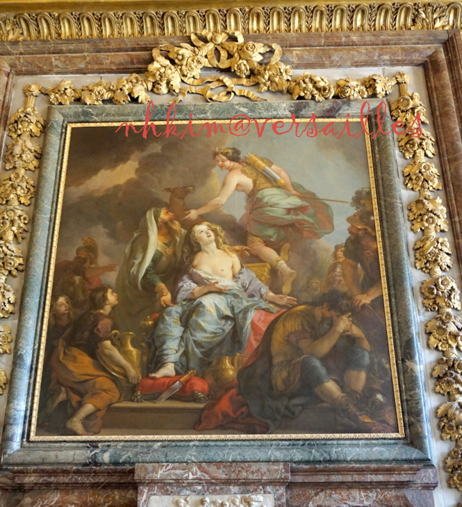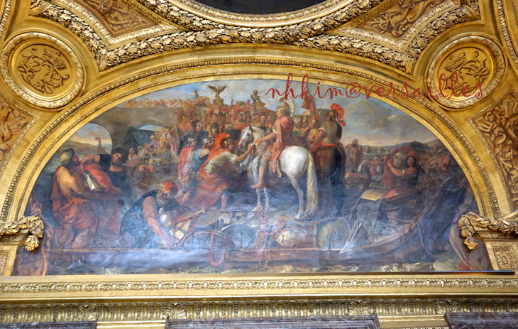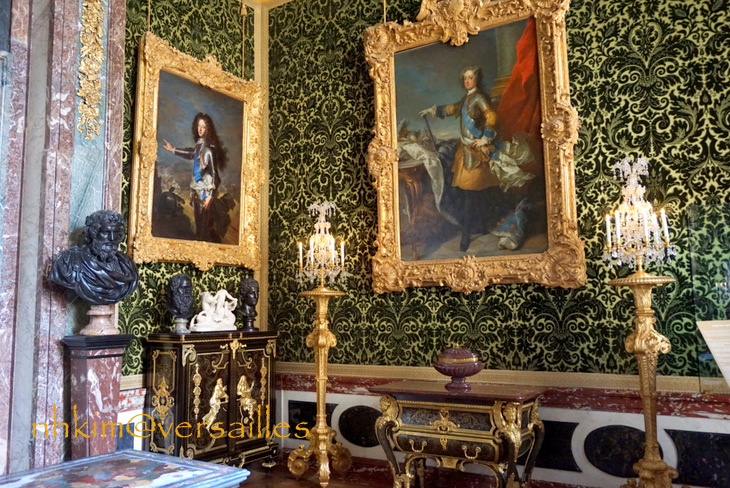 1730년에 루이 15세가 베르사유로 옮겨와서 1832년까지 이 방에 걸어 두었다.