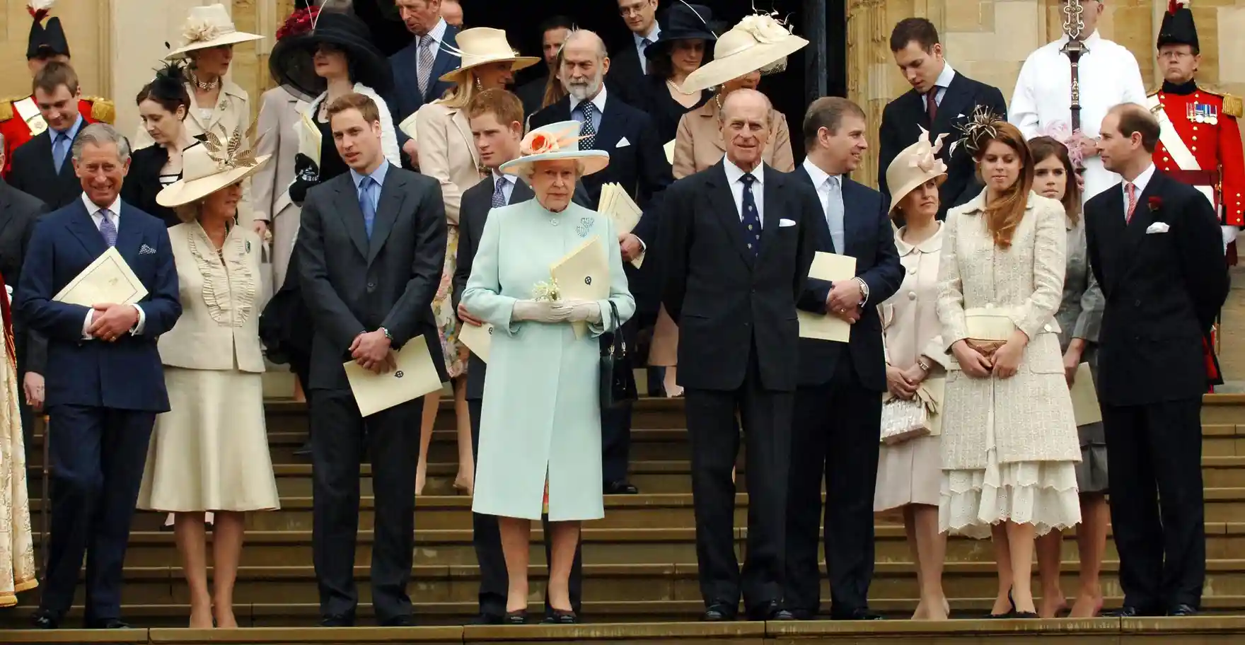세인트 조지 채플에서 그녀의 80회 생일 축하 예배를 마치고 가족과 함께...