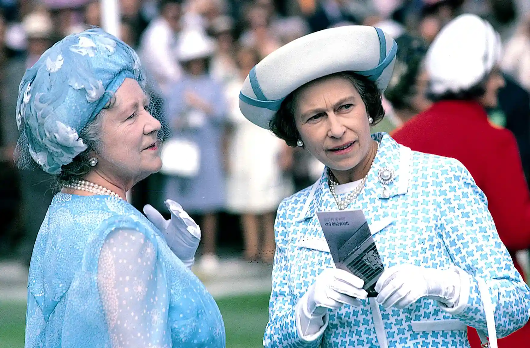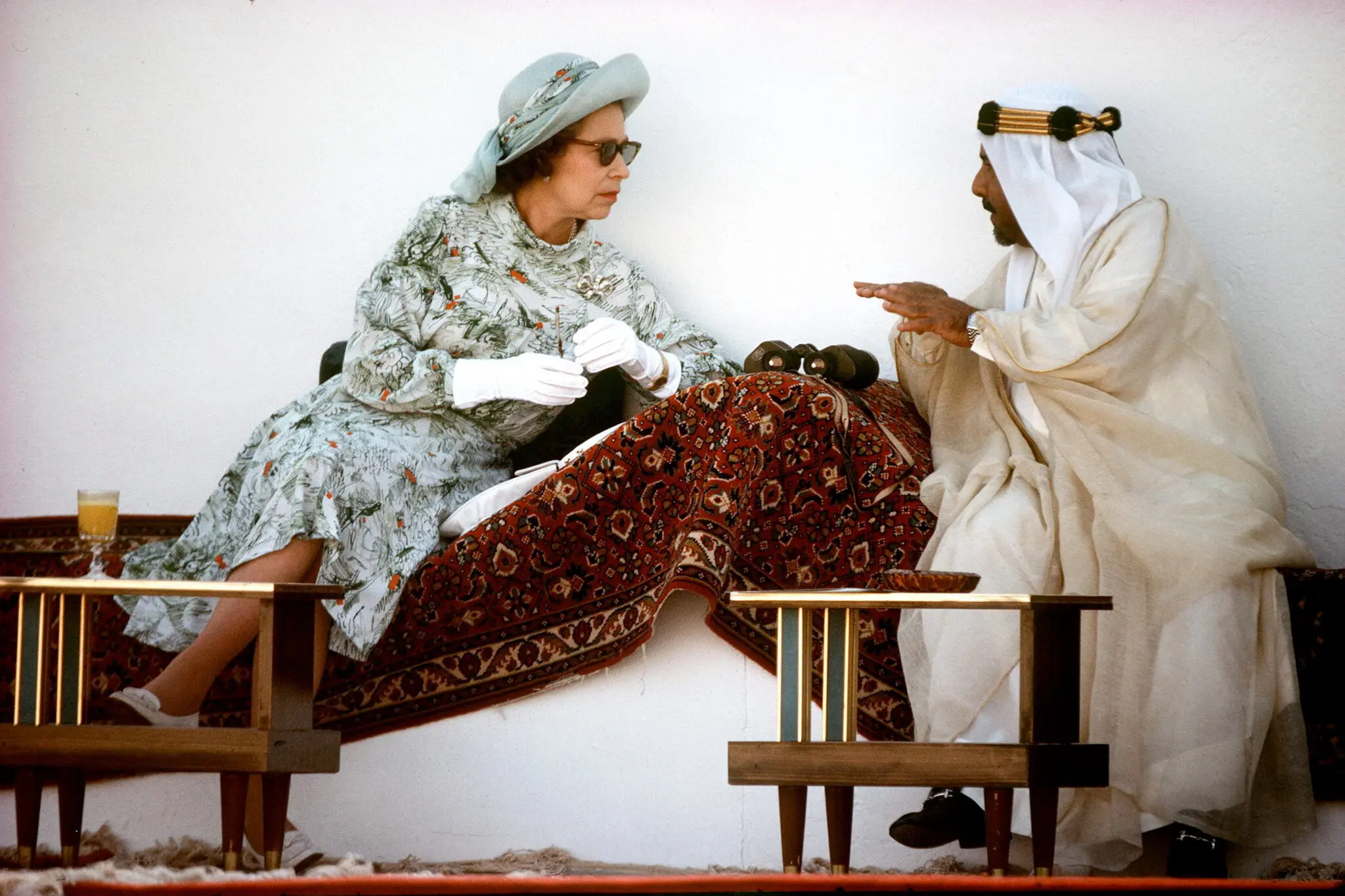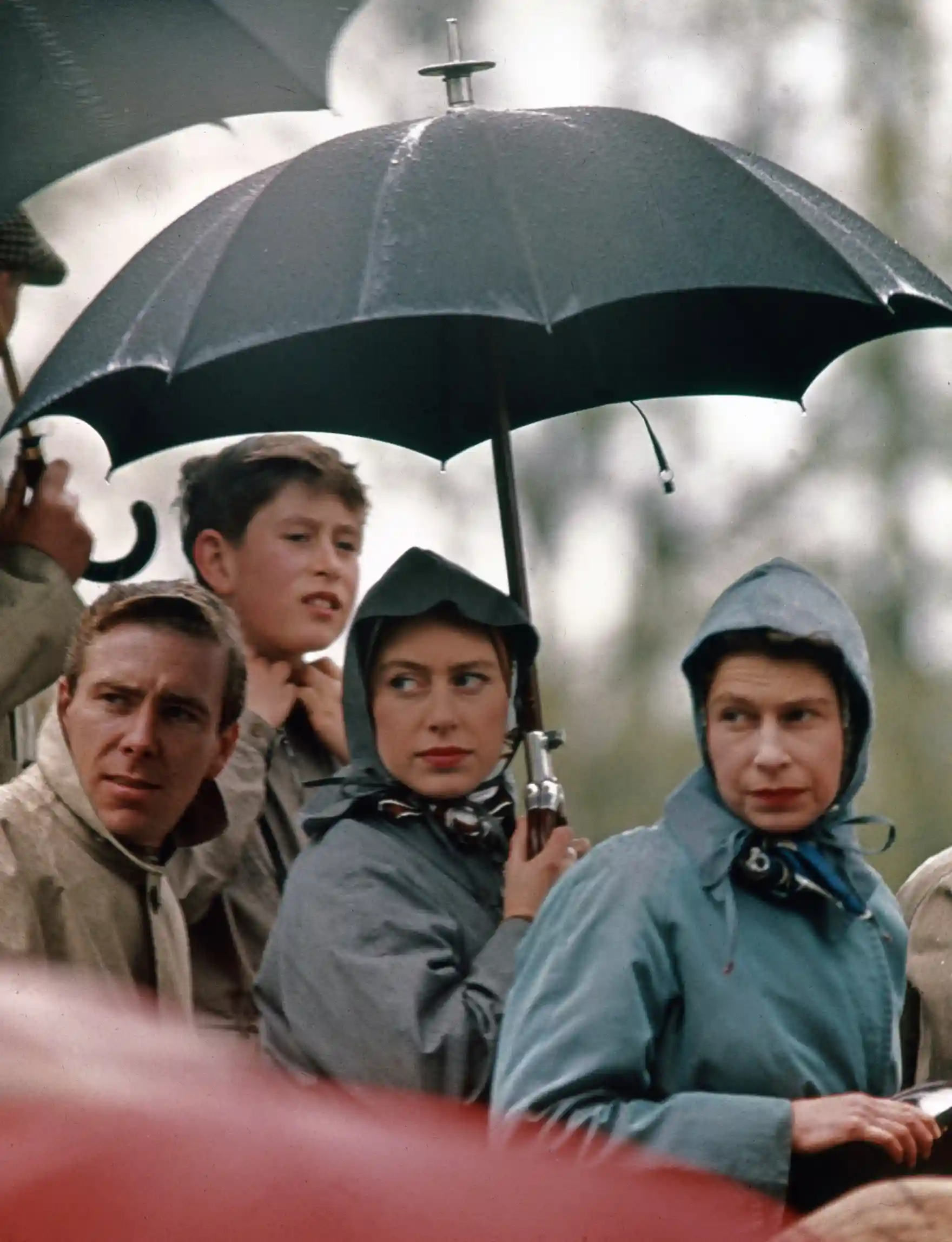 배드민턴에서 마가렛 공주와 찰스 왕자와 짚단 경주를 보고 있다.