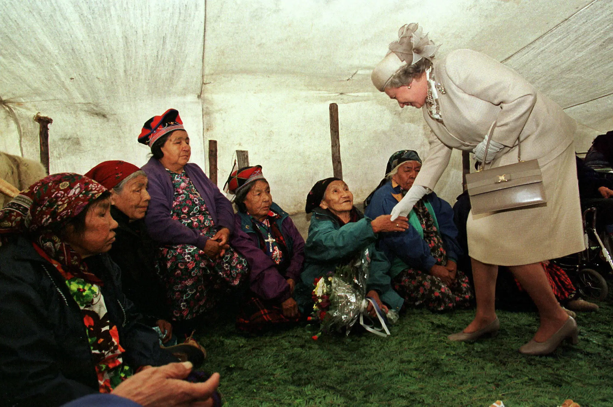 원주민 이누족의 여인들과 악수를 하는 여왕