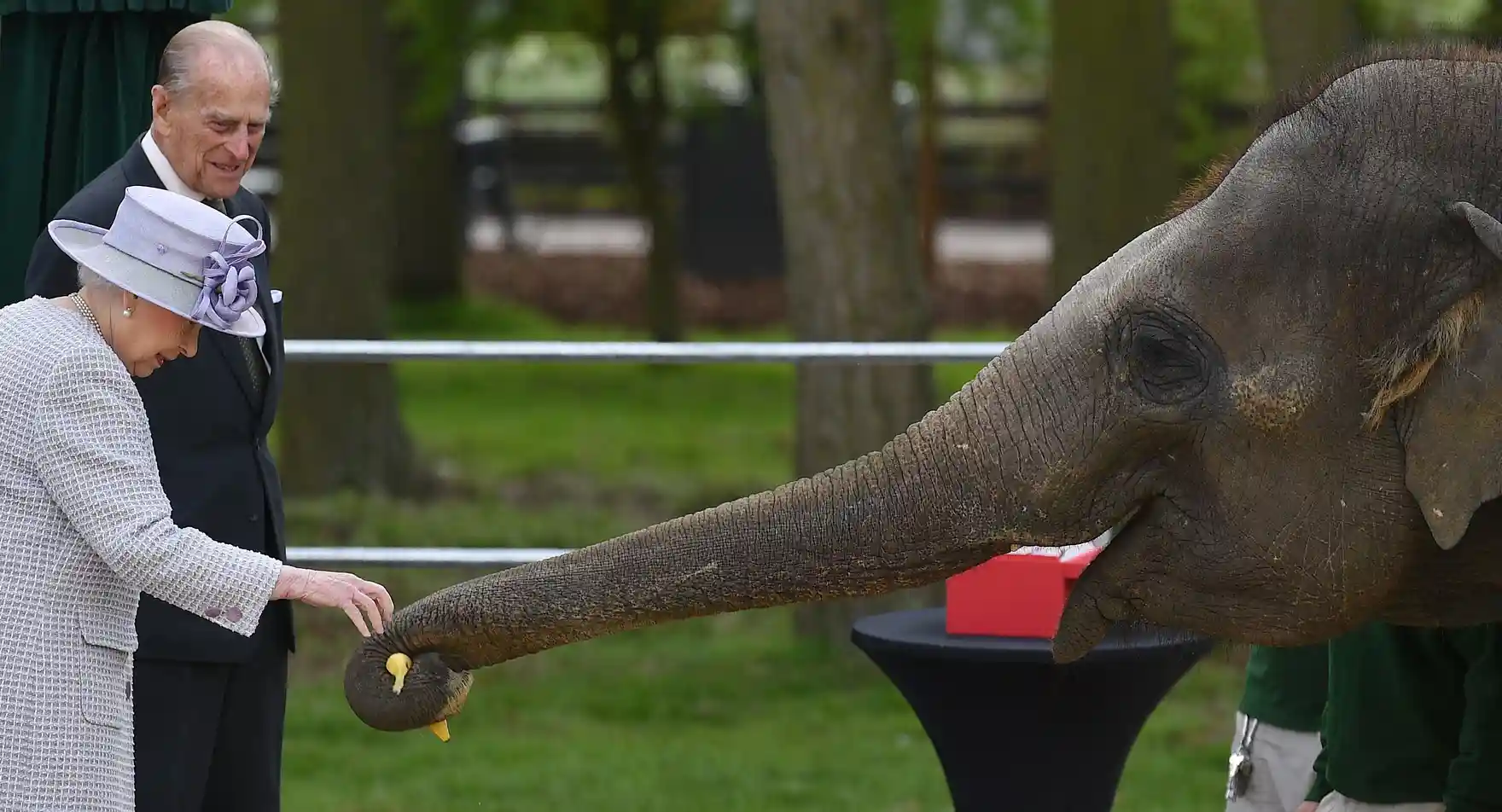 코끼리를 돌보아 주는 센터 개막식에서 코끼리 '도나' 에게 먹이를 주고 있는 여왕