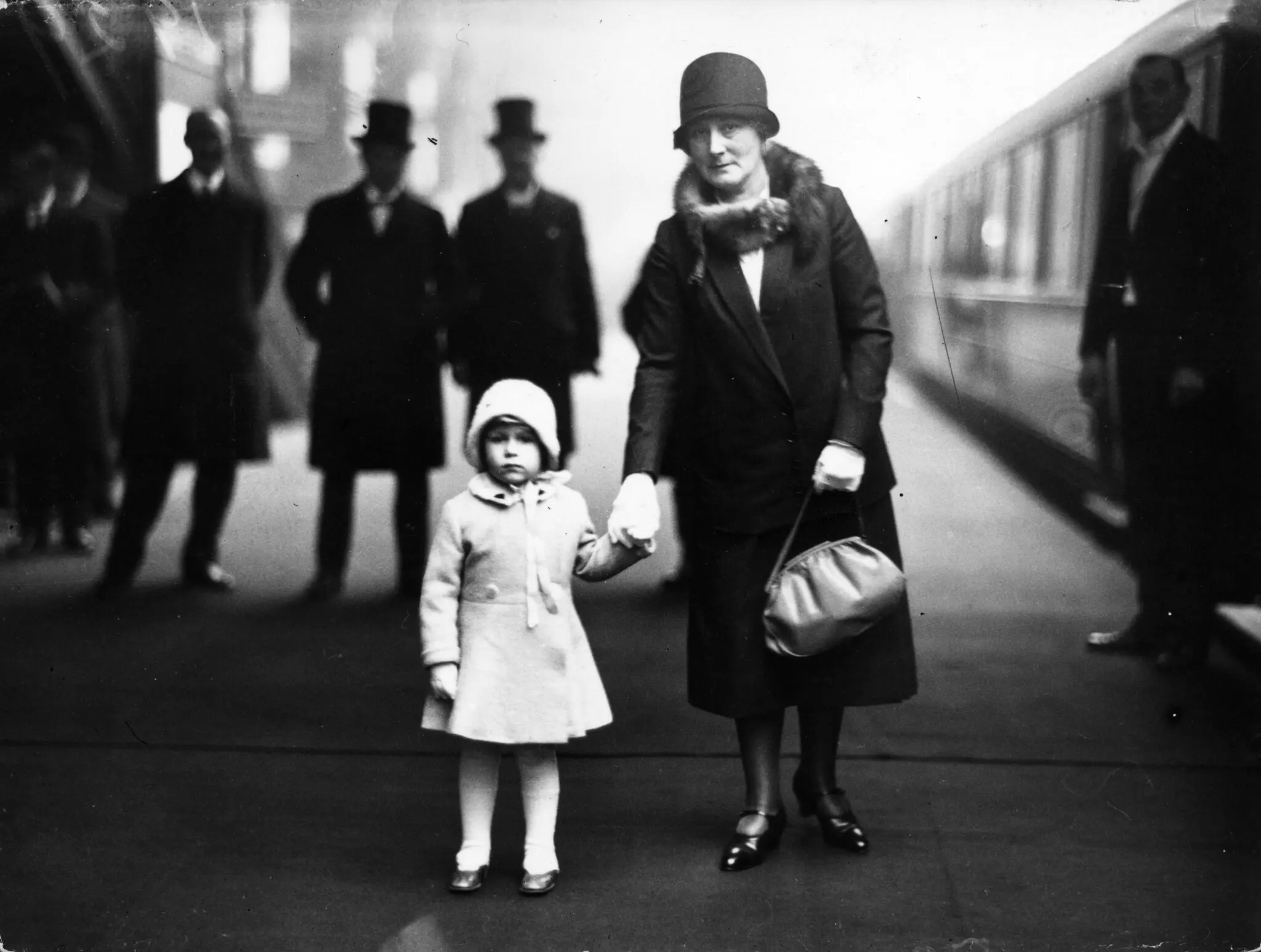 크리스마스 휴가를 보낼 샌드링햄 궁으로 가기 위해서 킹스 크로스 역에서 기차를 기다리는 엘리자베스