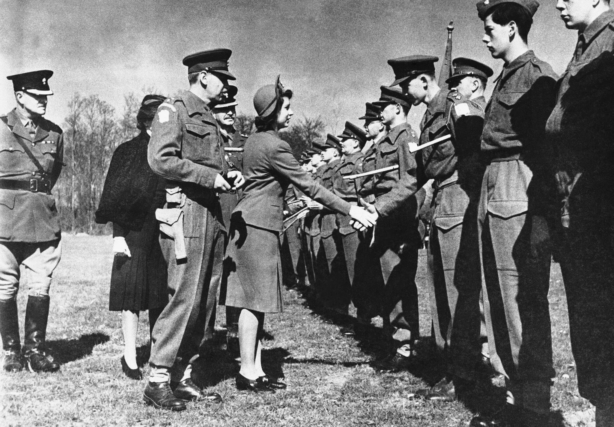 근위 보병대의 명예 대령인 엘리자베스가 사관생도들과 장교들을 격려하고 있다.