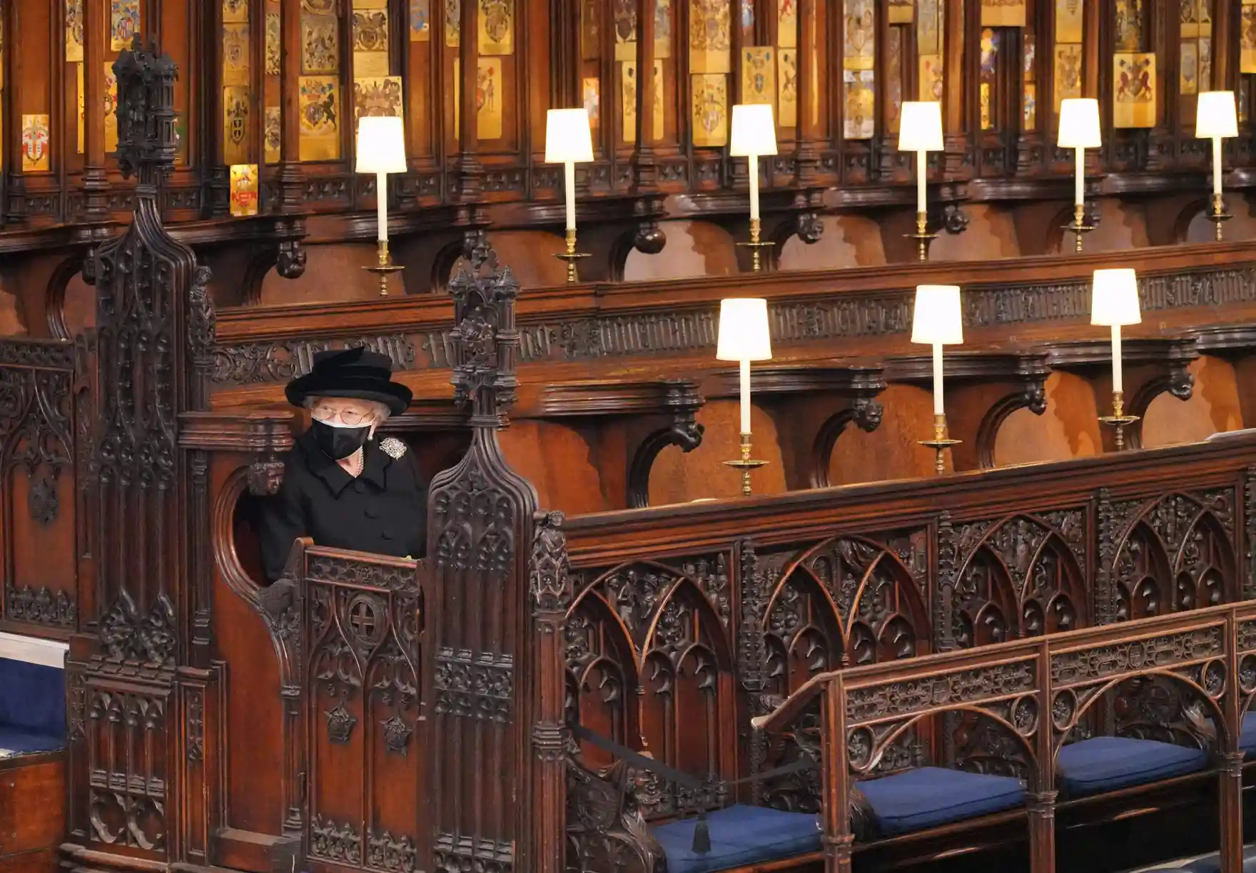세인트 조지 채플에서 열린 99세로 타계한 남편 필립공의 장례식에서