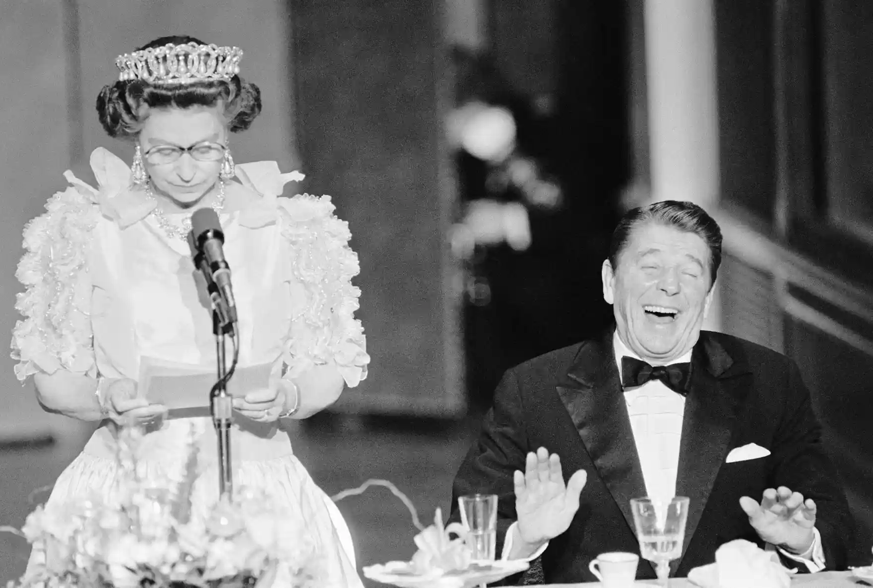 그녀가 도착한 후 캘리포니아의 악천후를 불평하는 조크를 던지는 여왕