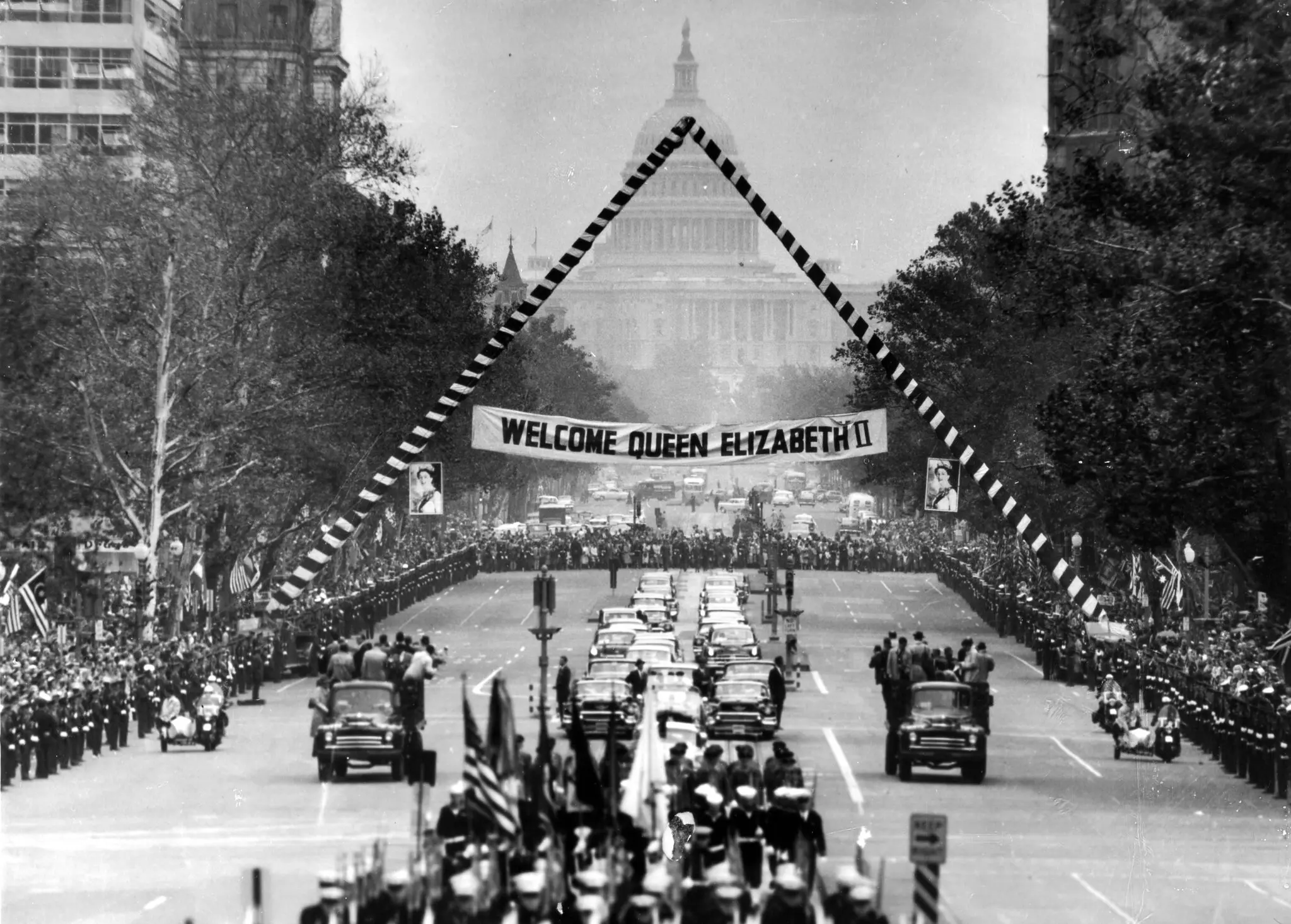영국의 왕/여왕으로 처음 미국을 방문하면서 워싱톤의 백악관으로 가는