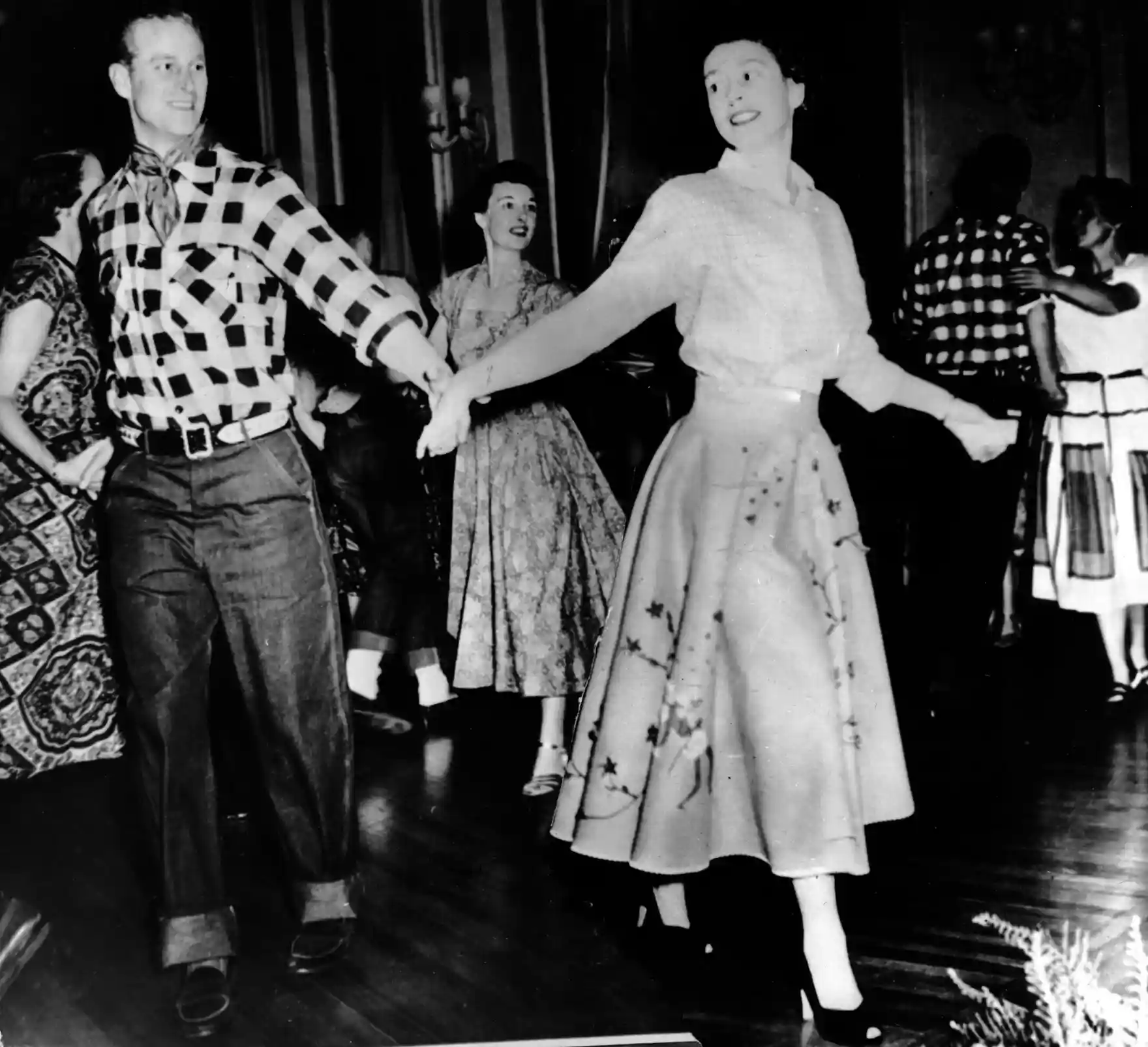 캐나다 방문시 오타와에서 남편 필립과 함께 스퀘어 댄스를 추고 있다.