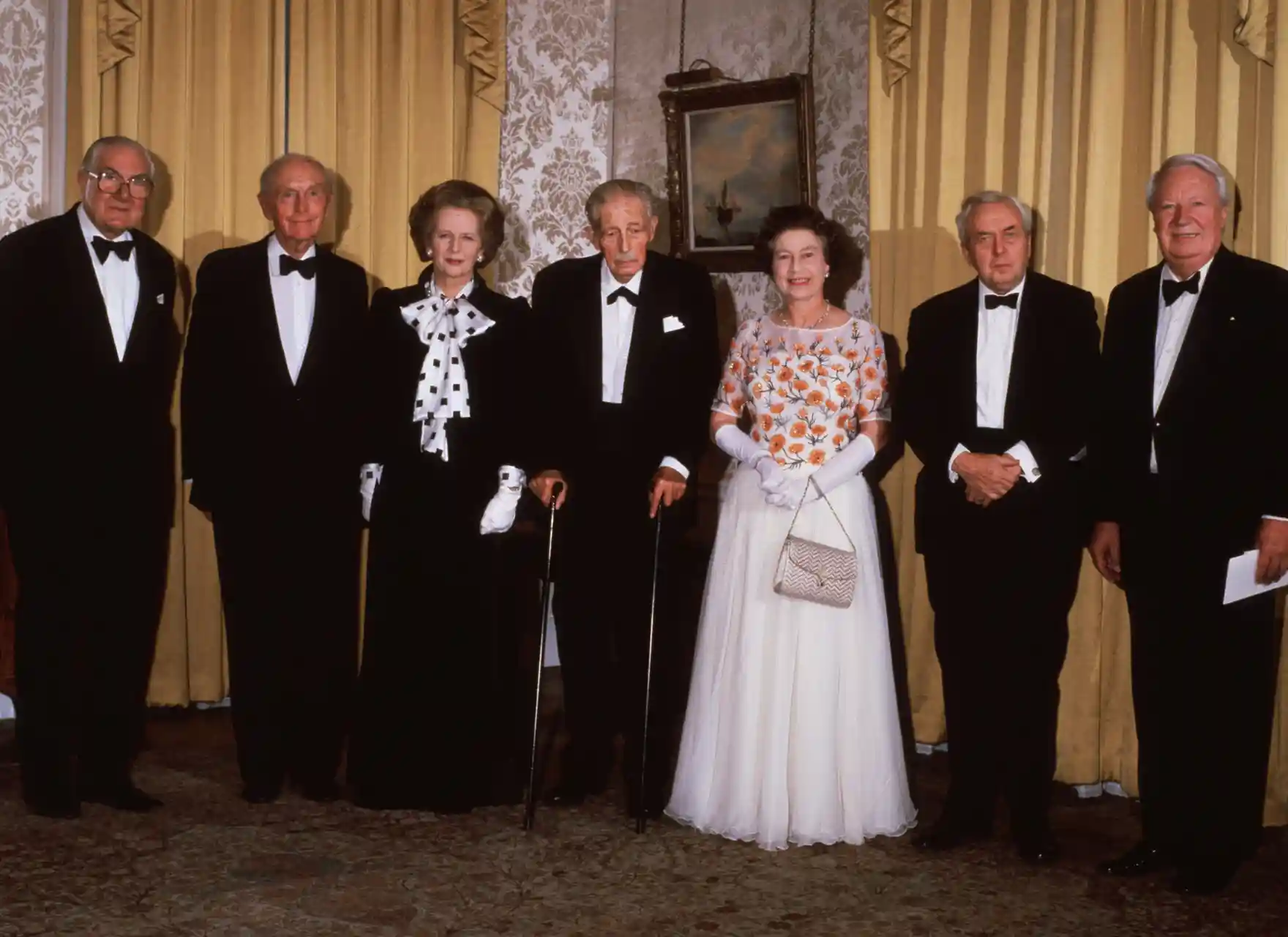 수상 관저의 250주년 기념행사에 전직 수상(왼편부터) 캘러핸, 홈, 태처, 맥밀런, 윌스