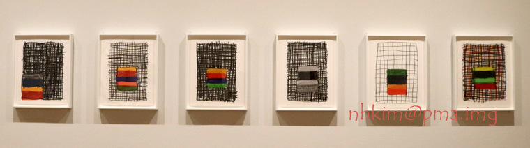 그는 이 작품처럼 바둑판 박스의 사이즈, 색상 그리고
