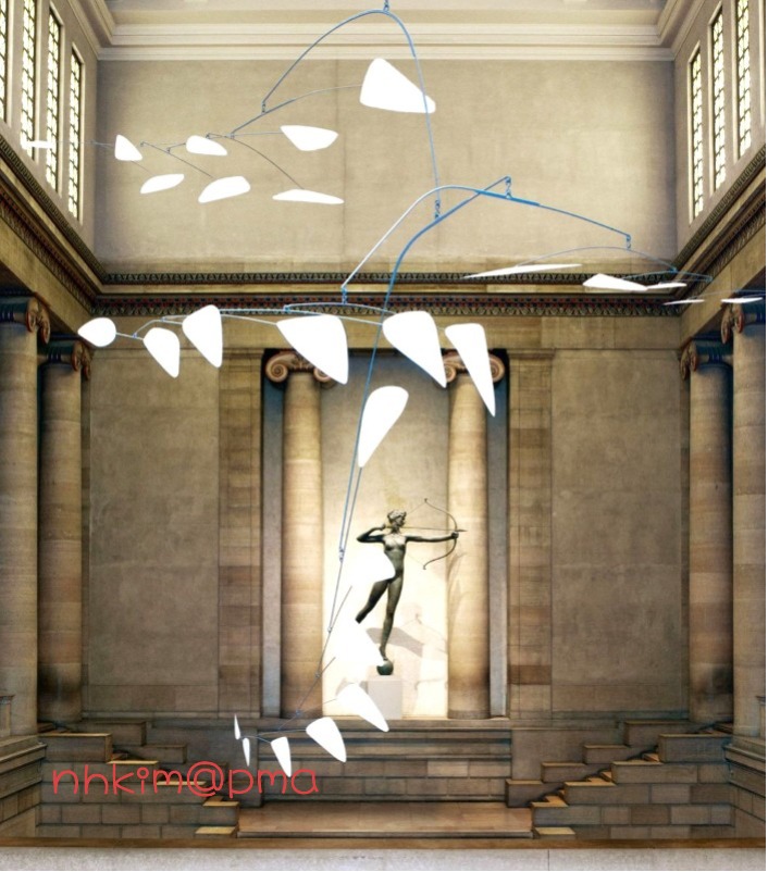 천장엔 콜더의 모빌 작품이 걸려있다.