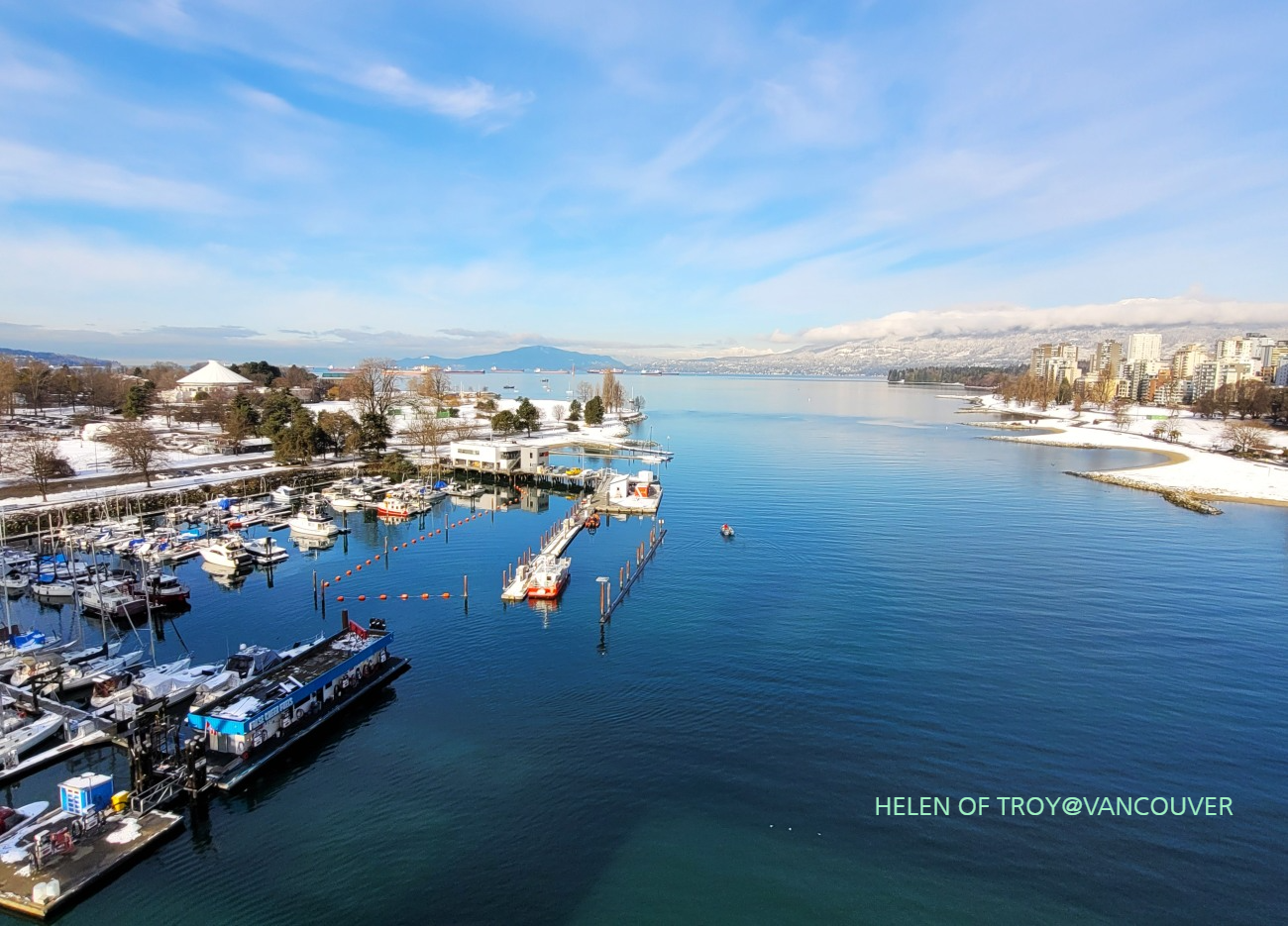 English Bay 뒤는 스탠리 파크와 UBC 대학교가 보인다.